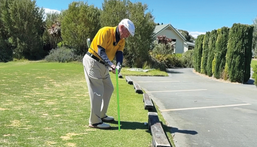 As you start your takeaway, let your hands travel back along the same line as the forward press.
